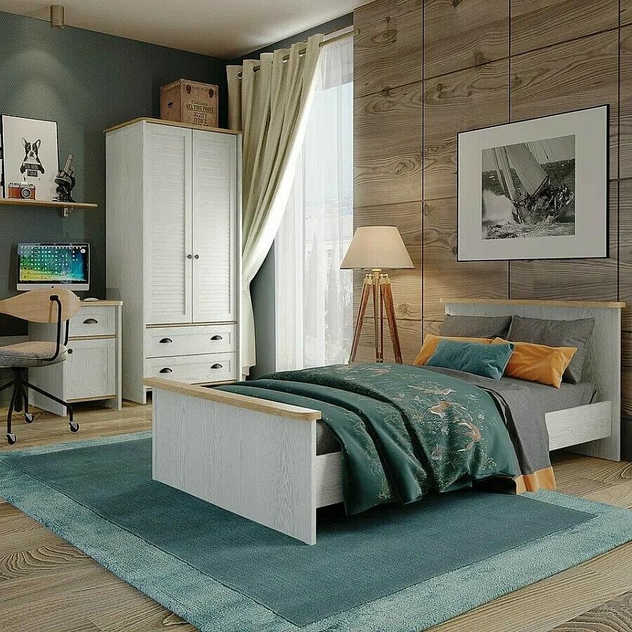 Кровать без обивки белая сосна, дуб небраска без подъёмного механизма, ортопедическое основание