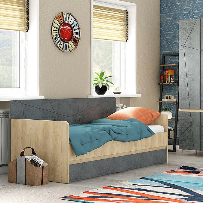 Кровать Киото без обивки бетон темный, дуб небраска без подъёмного механизма 900x1900, щит-основание, изголовье жесткое
