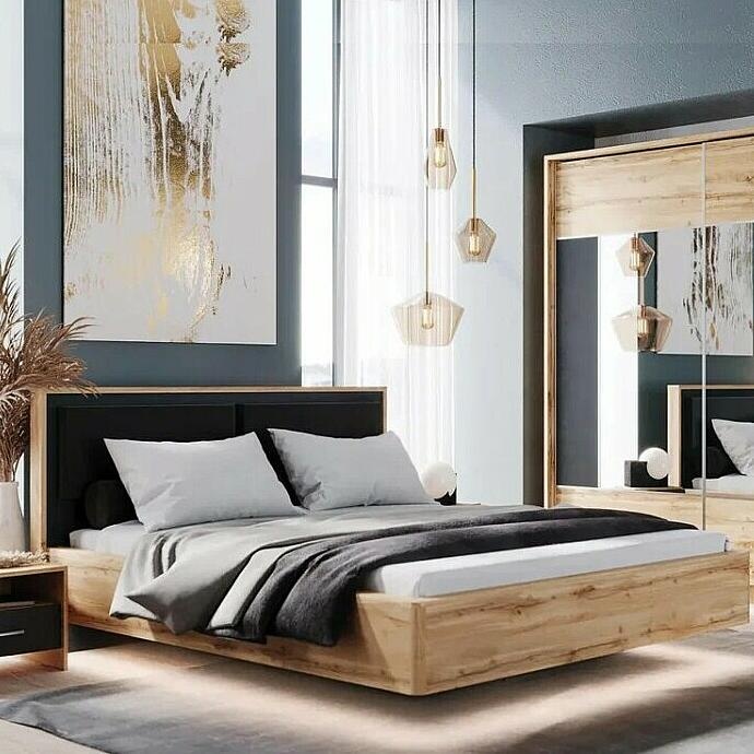 Кровать Клауд дуб крафт золотой/антрацит 1400x2000, изголовье мягкое