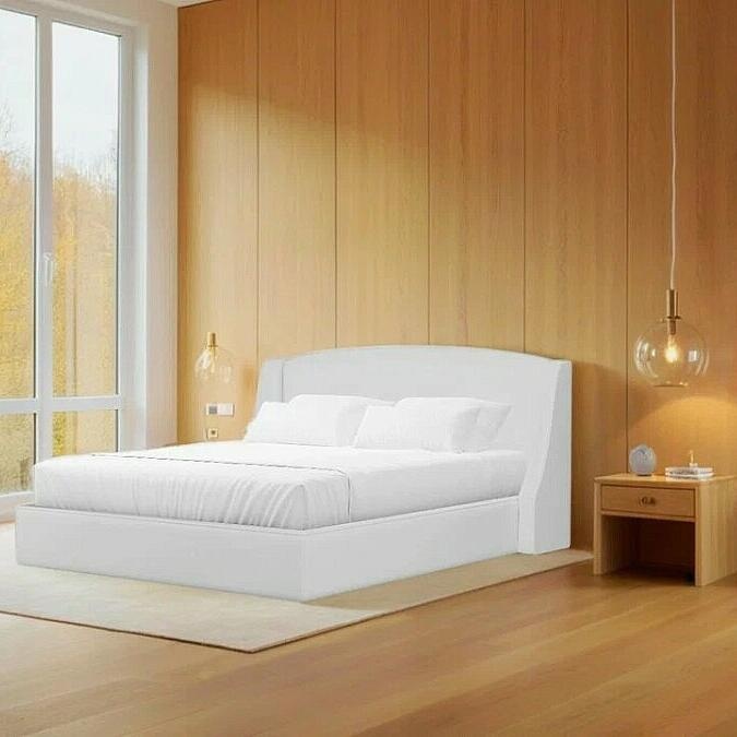 Кровать Лотос экокожа белый с подъемным механизмом 1600x2000, ортопедическое основание, изголовье мягкое