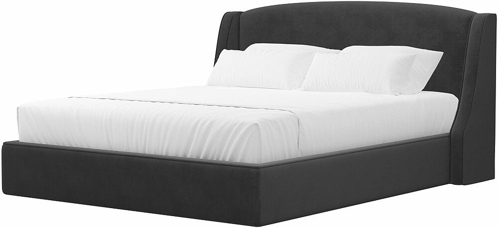 Кровать Лотос велюр серый с подъемным механизмом 1600x2000, ортопедическое основание, изголовье мягкое