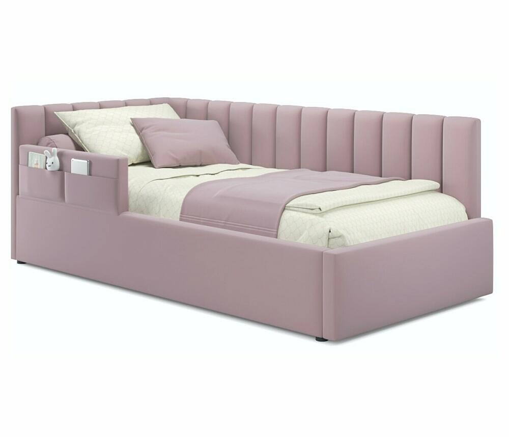 Кровать Milena велюр лиловый без подъёмного механизма 900x2000, ортопедическое основание, изголовье мягкое