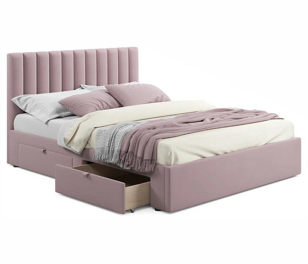 Кровать мягкая Olivia 1600 лиловая с ящиками