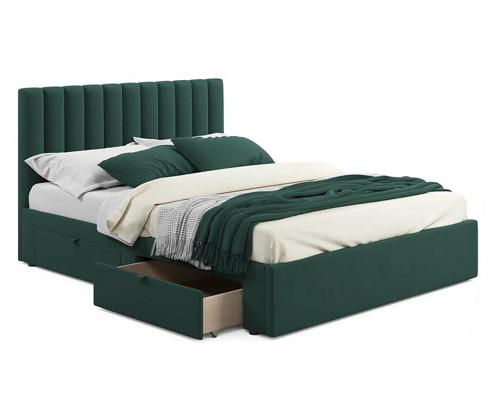 Кровать мягкая Olivia 1600 изумруд с ящиками