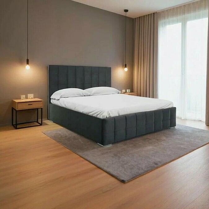 Кровать Пассаж велюр серый без подъёмного механизма 1600x2000, без ортопедического основания, изголовье мягкое