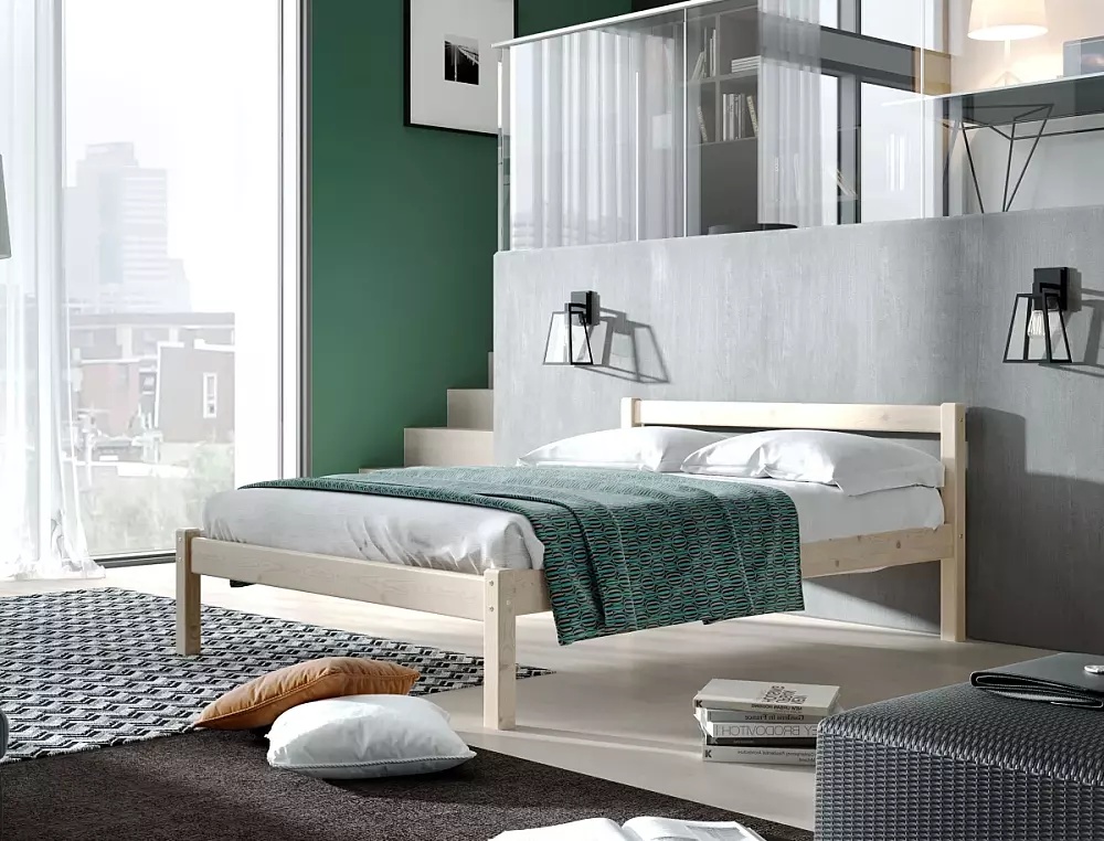 Кровать Рино без обивки бежевый без подъёмного механизма 1600x2000, изголовье жесткое