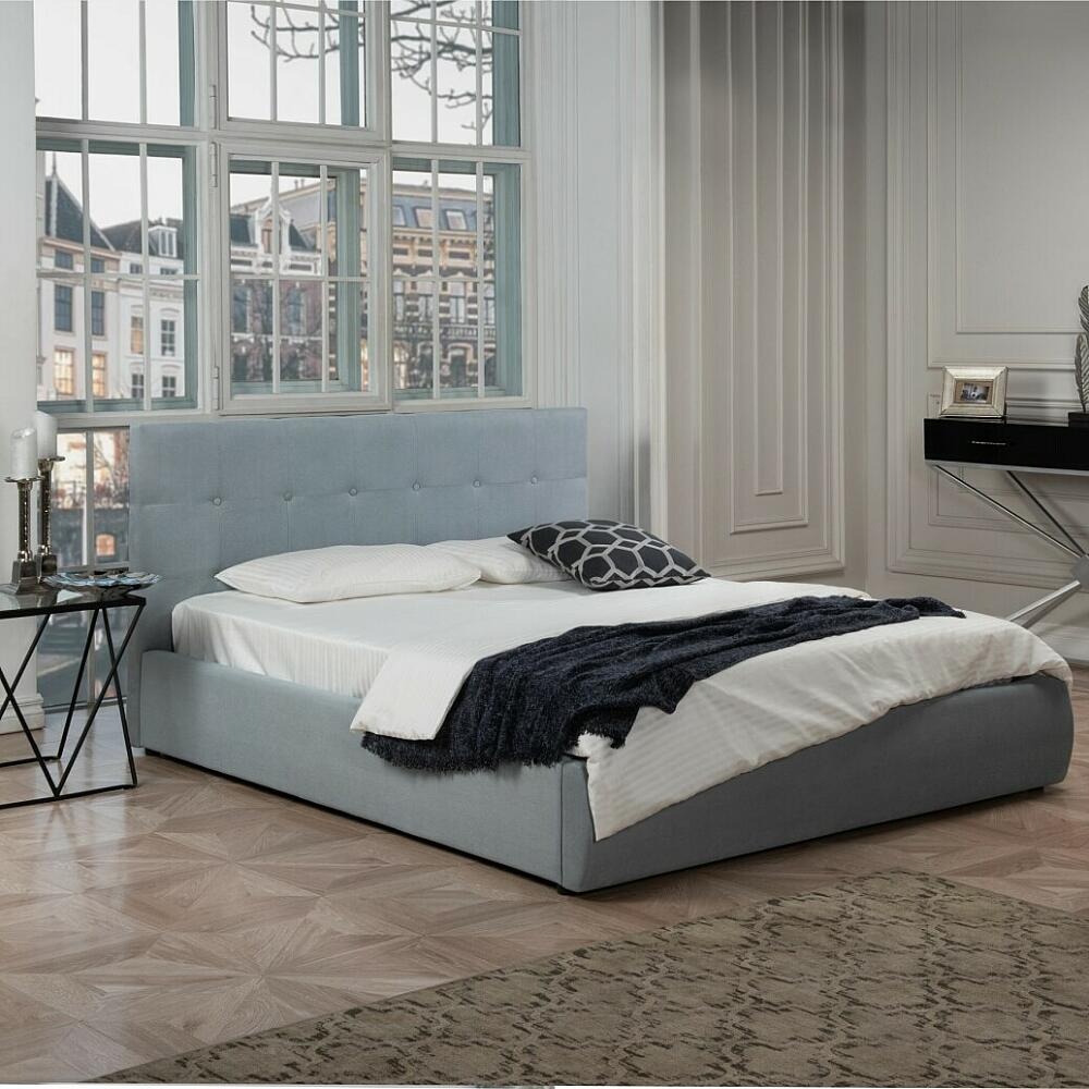 Кровать Селеста велюр серый с подъемным механизмом 1400x2000, ортопедическое основание, изголовье мягкое