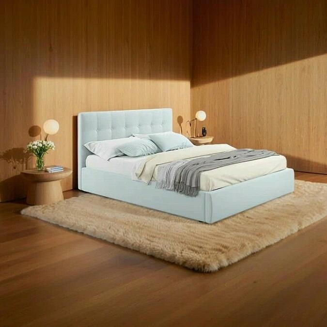 Кровать Selesta велюр мята пастель без подъёмного механизма 1600x2000, изголовье мягкое