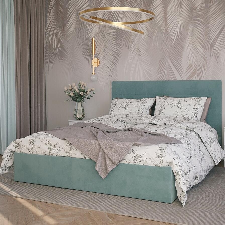 Кровать Соната велюр мятный без подъёмного механизма 1600x2000, без ортопедического основания, изголовье мягкое