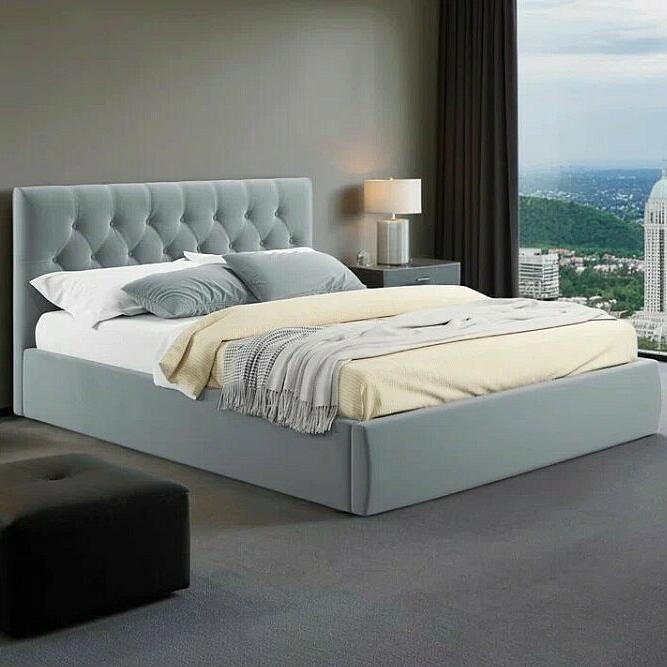 Кровать Verona велюр серый с подъемным механизмом 1800x2000, ортопедическое основание, изголовье мягкое