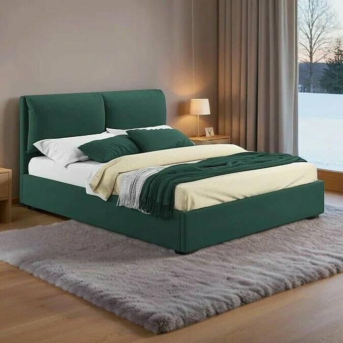 Кровать Vita велюр изумруд с подъемным механизмом 1600x2000, ортопедическое основание, изголовье мягкое