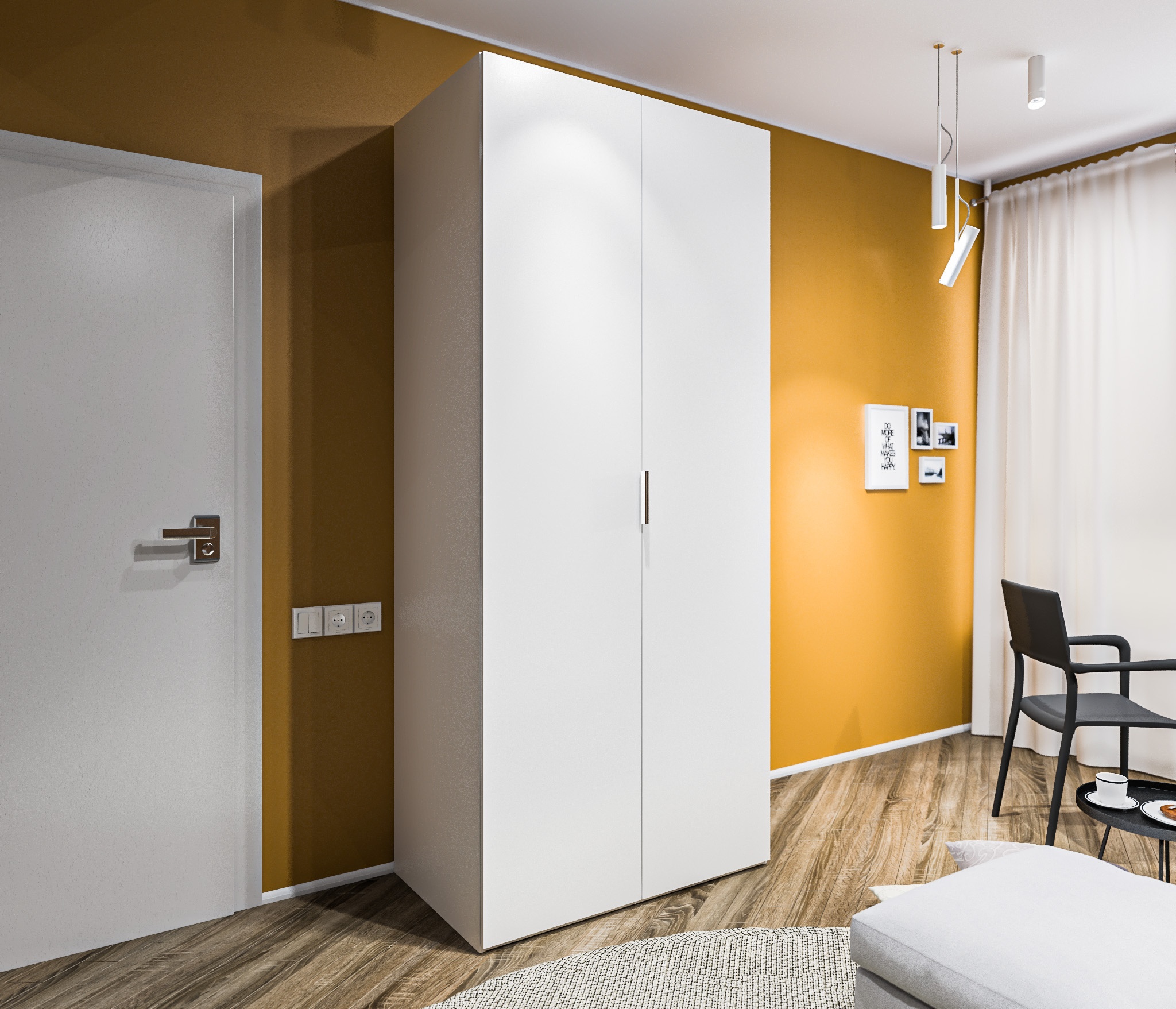 КомментарийУ нас большая семья. Вещи в шкафы просто не помещались, так что решили заказать в прихожую шкаф побольше. Хотелось, чтобы внутри было вместительное отделение для вешалок. Выбрали эту модель и очень довольны. Вся одежда влезает, двери открываются и закрываются мягко. Выглядит симпатично. В двери встроено зеркало.