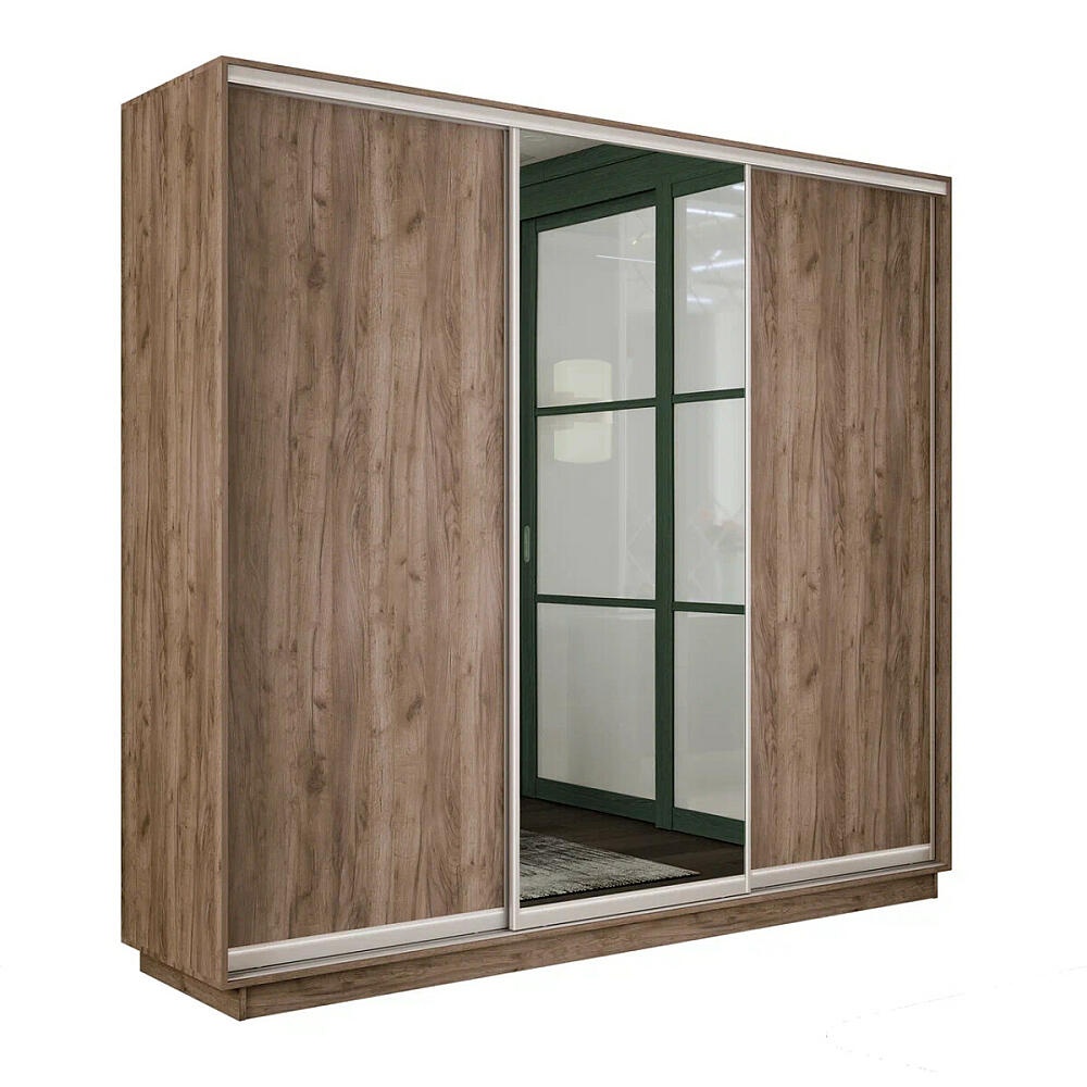 Шкаф Экспресс 2 3-х дверный Трио ЛДСП Зеркало ЛДСП (Серебряный профиль) Дуб Крафт Табачный 1800x2400x450