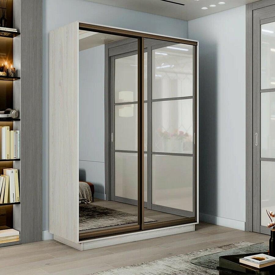 Шкаф-купе 1200x450x2400 Экспресс 2 Ясень Анкор светлый зеркало, ЛДСП