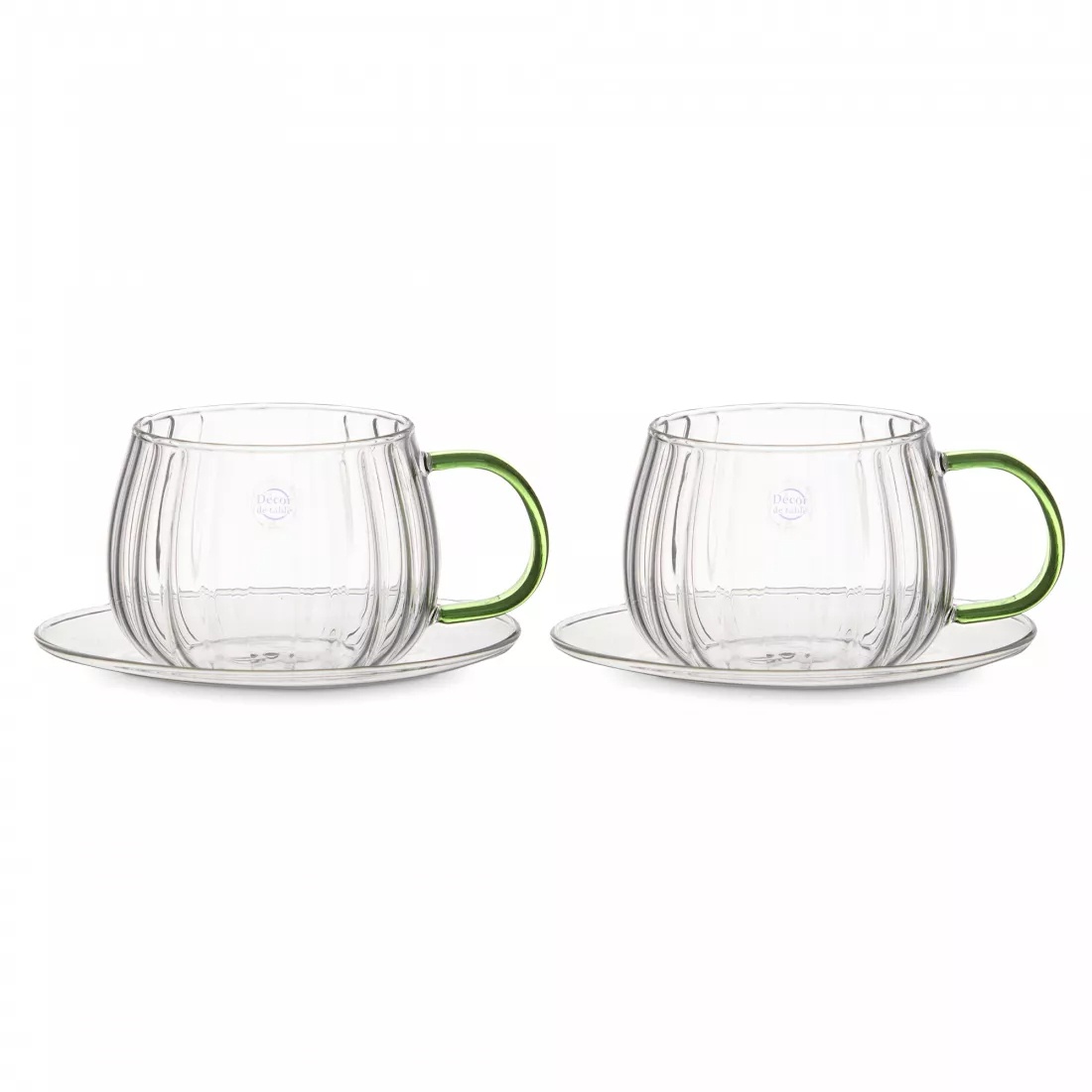 Набор чашек чайных с блюдцем с двойными стенками Decor de table Cafe de Paris 350 мл, 2шт, зеленая ручка