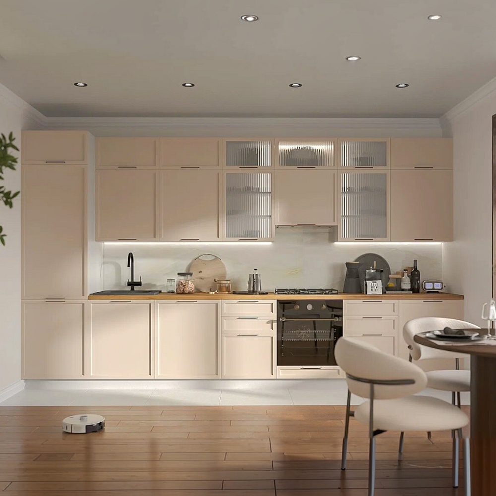 Мне всегда хотелось иметь на кухне множество больших ящиков, чтобы хранить в них не только посуду и другую утварь кухонную но и другие разные вещи. Поэтому эта модель мне и приглянулась. Но пишу не потому просто хочу сказать спасибо мастеру , который делал замеры а потом и устанавливал все. Это очень добрый и отзывчив человек и при этом настоящий профессионал. Он показал образцы их можно было потрогать и так было удобнее определиться с цветом. Я еще сомневался и были некоторые нюансы по конструкции так мне дали три дня чтобы все обдумать. Собрал кухню быстро и очень качественно. Никаких зазоров все такое ровное ящики открываются легко и доводчики держат как нужно. Если честно то я часто наоборот сталкиваюсь с хамством а здесь все на высшем уровне. Спасибо!