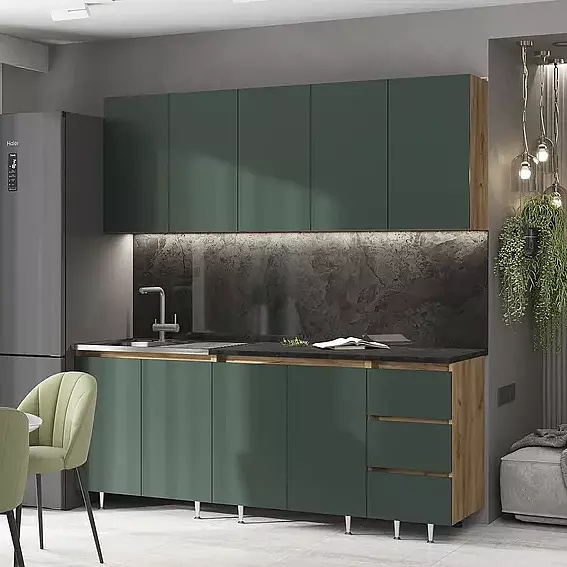 Кухня Челси 2,0м (Изумрудный, Дуб Крафт (Кастилло темный))