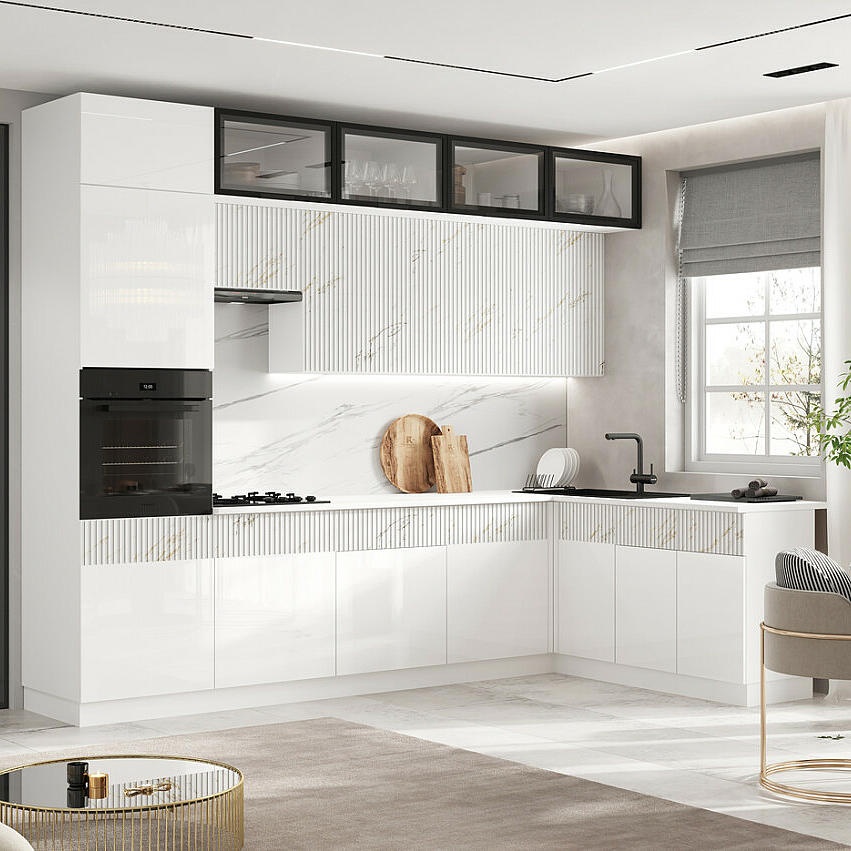 Кухня Оливия NEW 3,0х1,8м (490) (Белый глянец/Мрамор золото, Белый (Антарес))