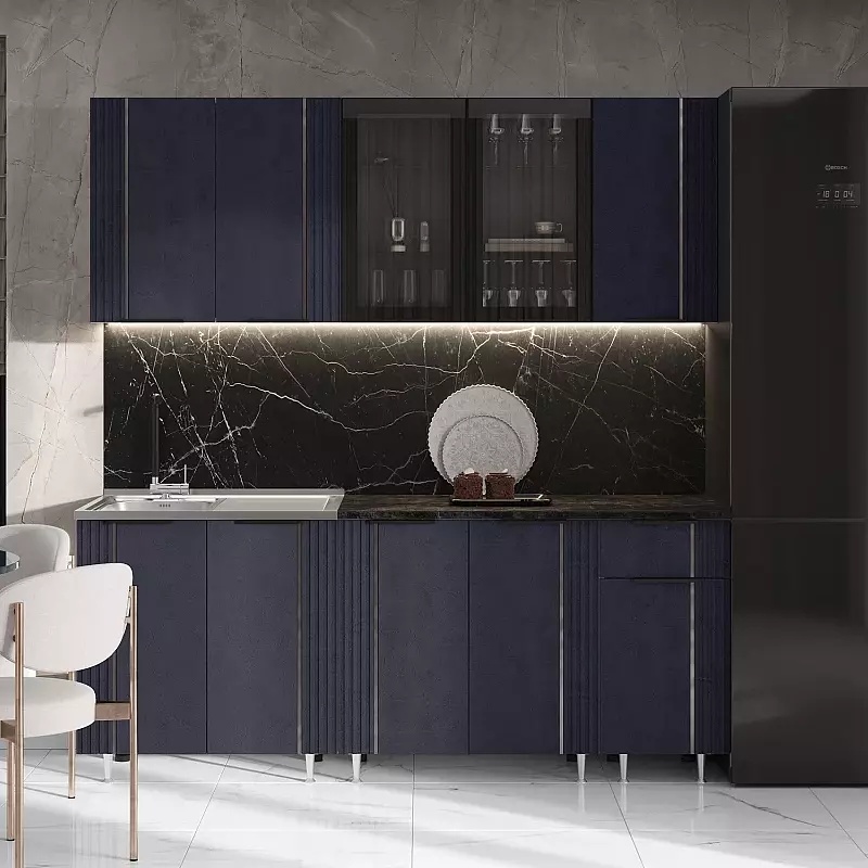 Кухня Виктория 2,0м (490) (Пластер Индиго, Графит (Кастилло темный))