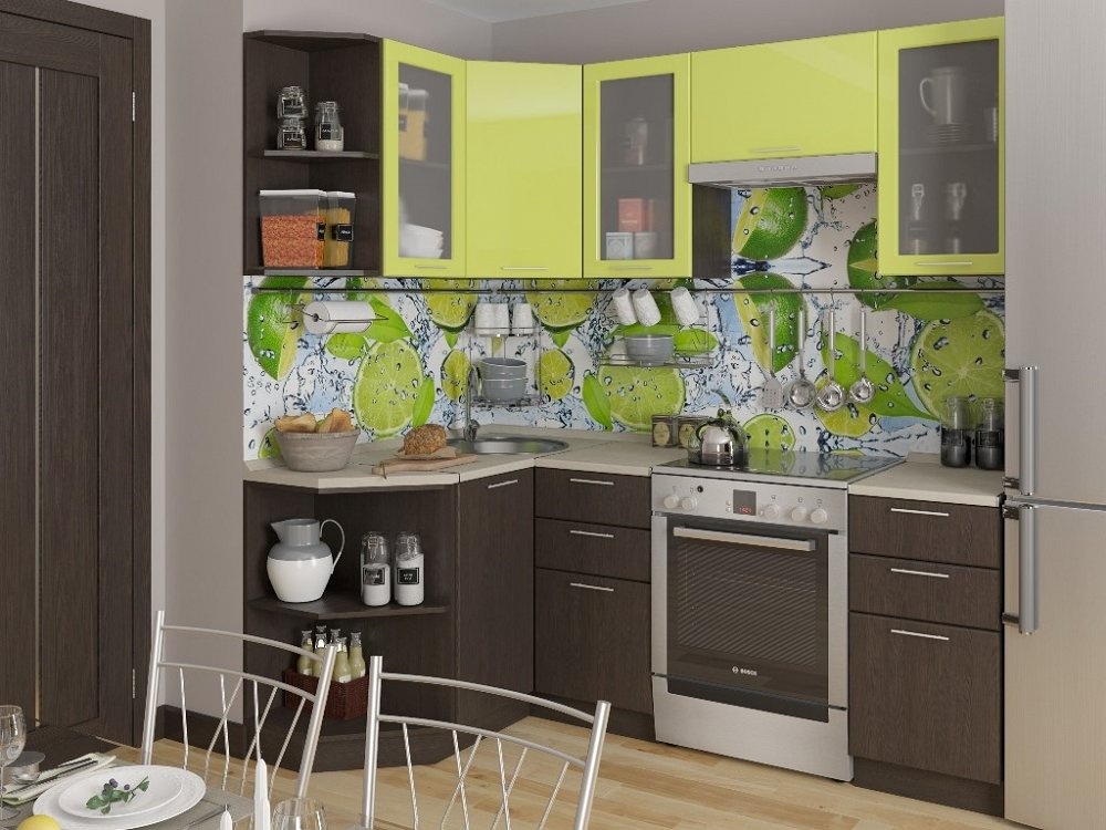 Угловая кухня Валерия-М-05 Лайм глянец/Венге