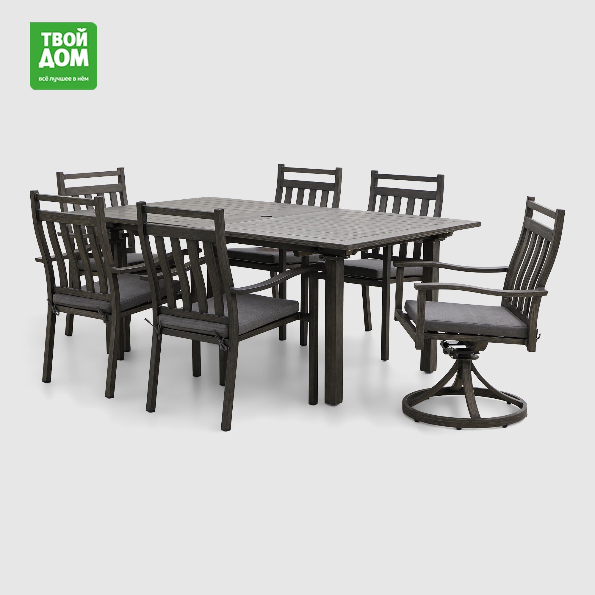 - Комплект мебели Bizzotto угольный 9 предметов: стол Kiplin и 8 кресел Konnor429 999 ₽279 990 ₽-35%20 000 ₽продавец