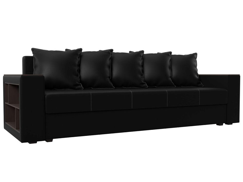 Диван прямой Дубай Лайт полки слева Экокожа Чёрный