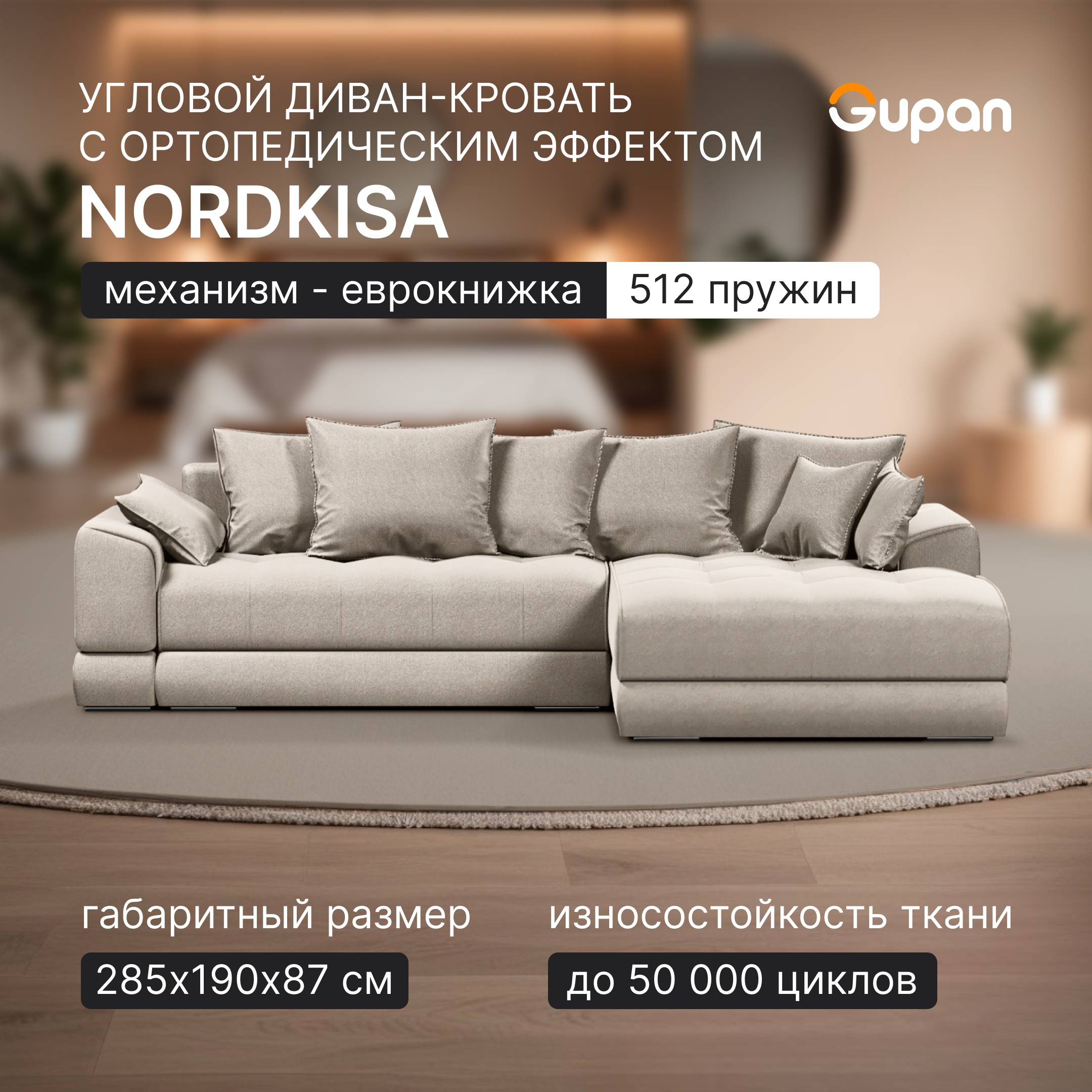 Диван Кровать Gupan Nordkisa Пружины Еврокнижка Amigo Cream