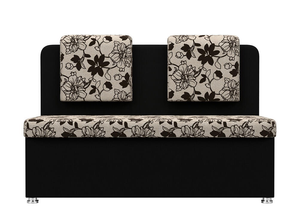 Диван кухонный прямой Маккон 2-х местный Рогожка Цветы Велюр Черный