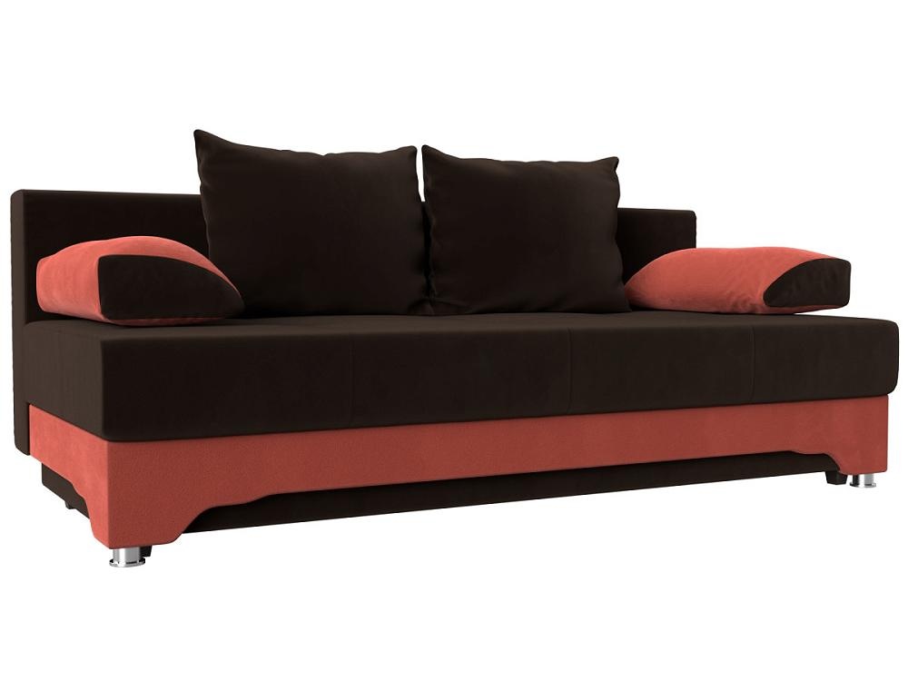 Диван прямой Ник-2 Микровельвет Коричневый/Коралловый