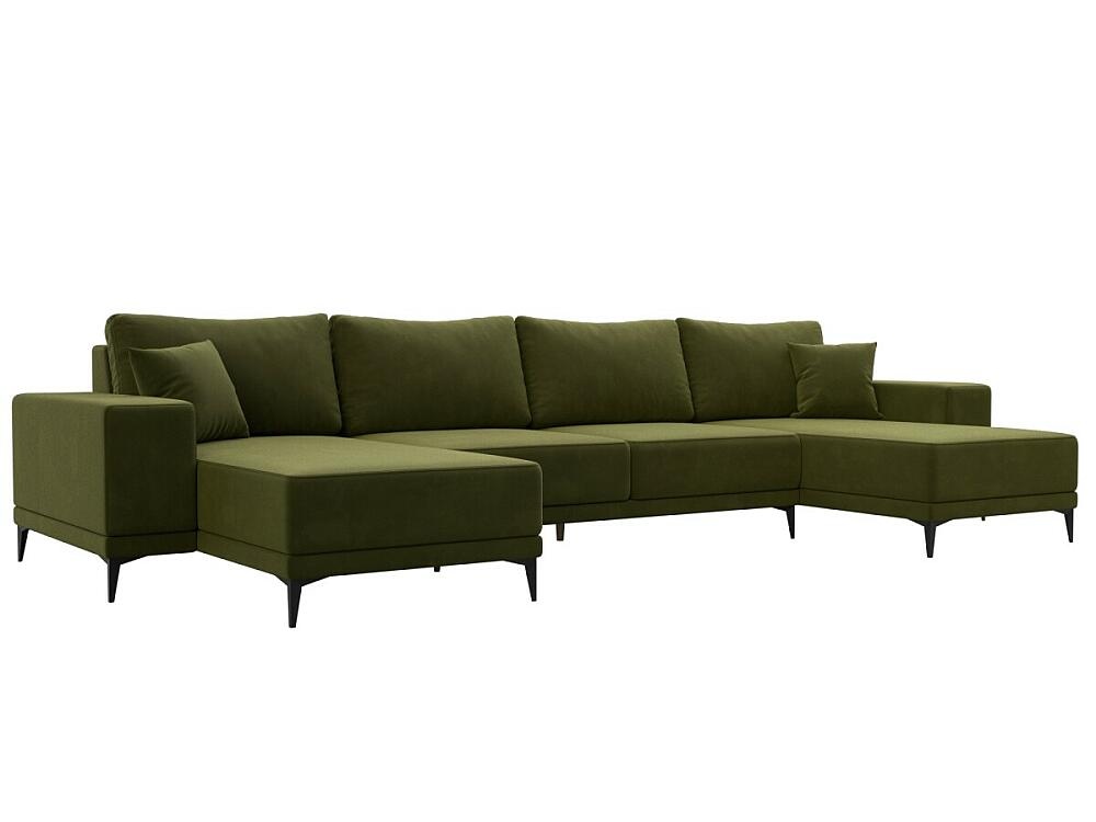 Диван П-образный Льюес Микровельвет Зелёный