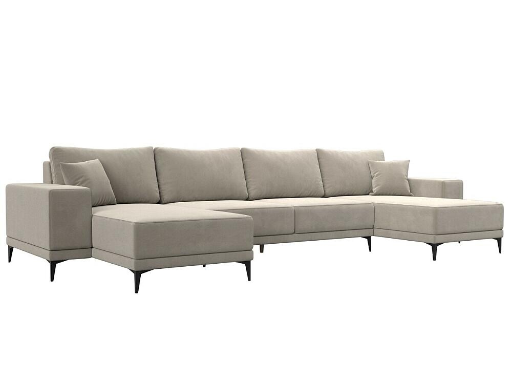 Диван П-образный Льюес Микровельвет Бежевый