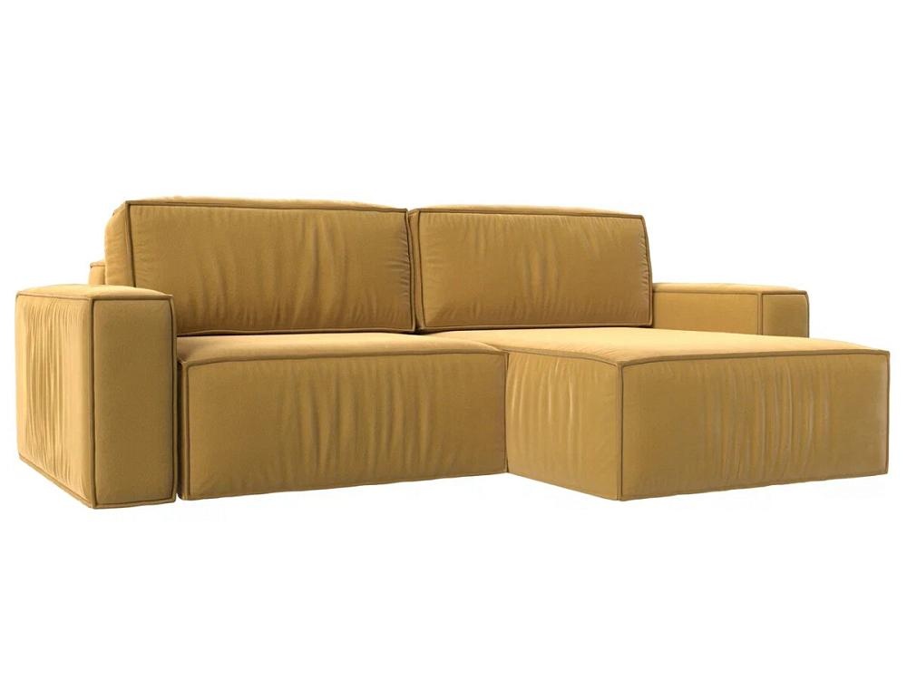 Угловой диван Прага классик правый угол, микровельвет, желтый