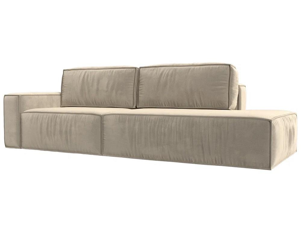 Прямой диван Прага модерн подлокотник слева, микровельвет, бежевый