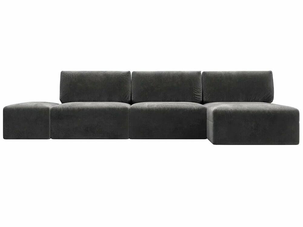 Диван угловой модульный с пуфом Лига-060 НПБ Лонг угол универсальный Велюр TOWER 10 серый